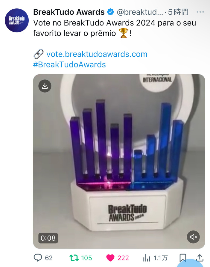 ブラジルのマルチメディアコンテンツのawardにBE:FIRSTが2年連続ノミネート!2023年は国際新人賞部門で🏆を掴みましたが、2024年は『国際男性グループ賞』部門にノミネート。錚々たる顔ぶれの中にBE:FIRSTの名前があることを誇りに想うと同時に、BESTY総力戦で投票のご協力をお願いできると幸いです!