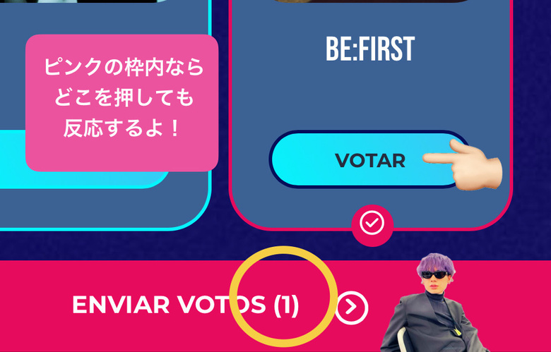 VOTERを押すと下のバーで数字がカウントされるのでMAX5回まで押す